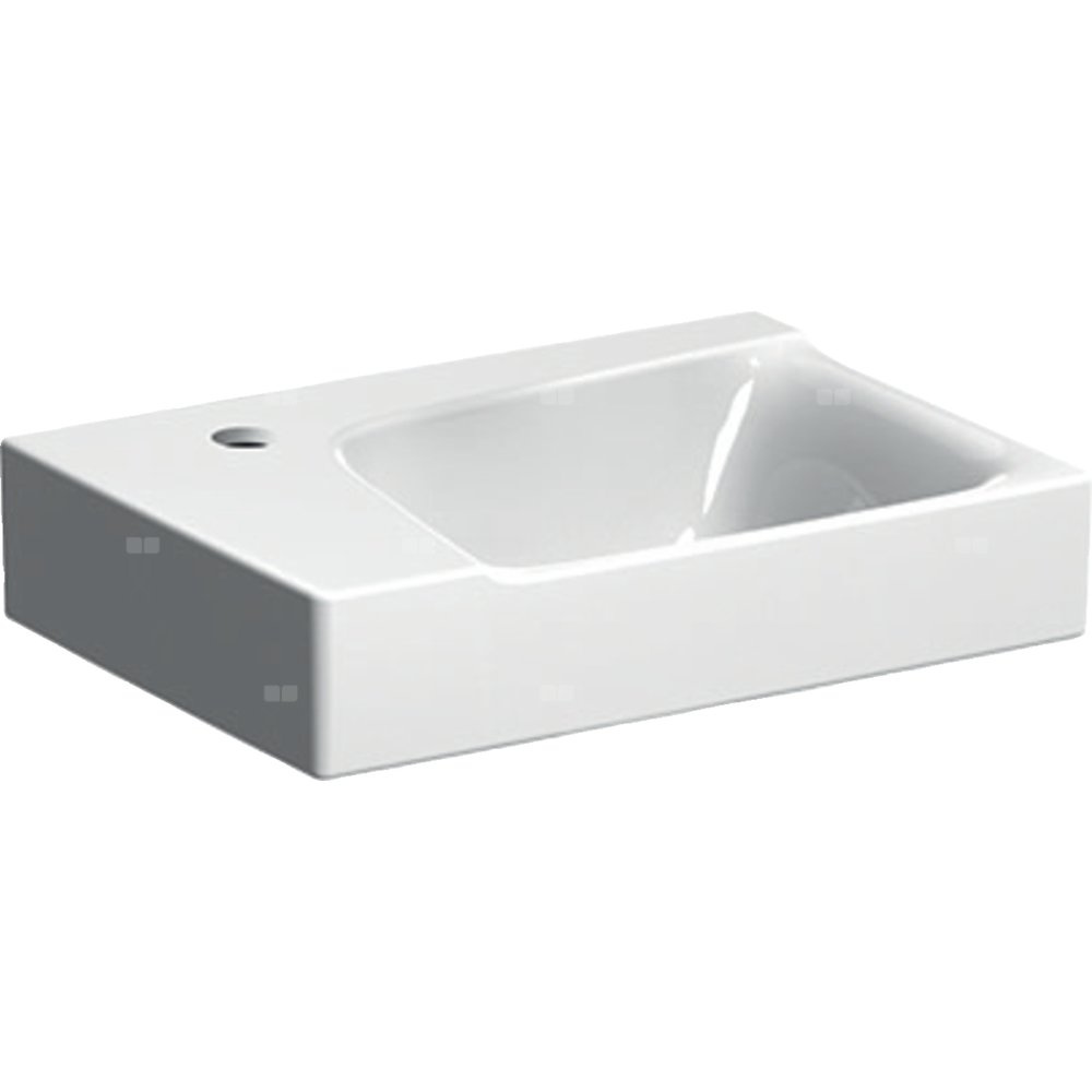 Umywalka GEBERIT Xeno2 prostokątna, biała, 400mm, otwór na baterię z lewej, bez odpływu przelewowego, półka z lewej