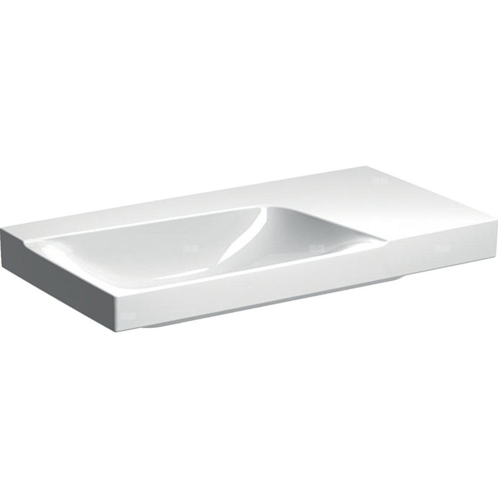 Umywalka GEBERIT Xeno2 prostokątna, biała, 900mm, bez otworu na baterię, bez odpływu przelewowego, półka z prawej