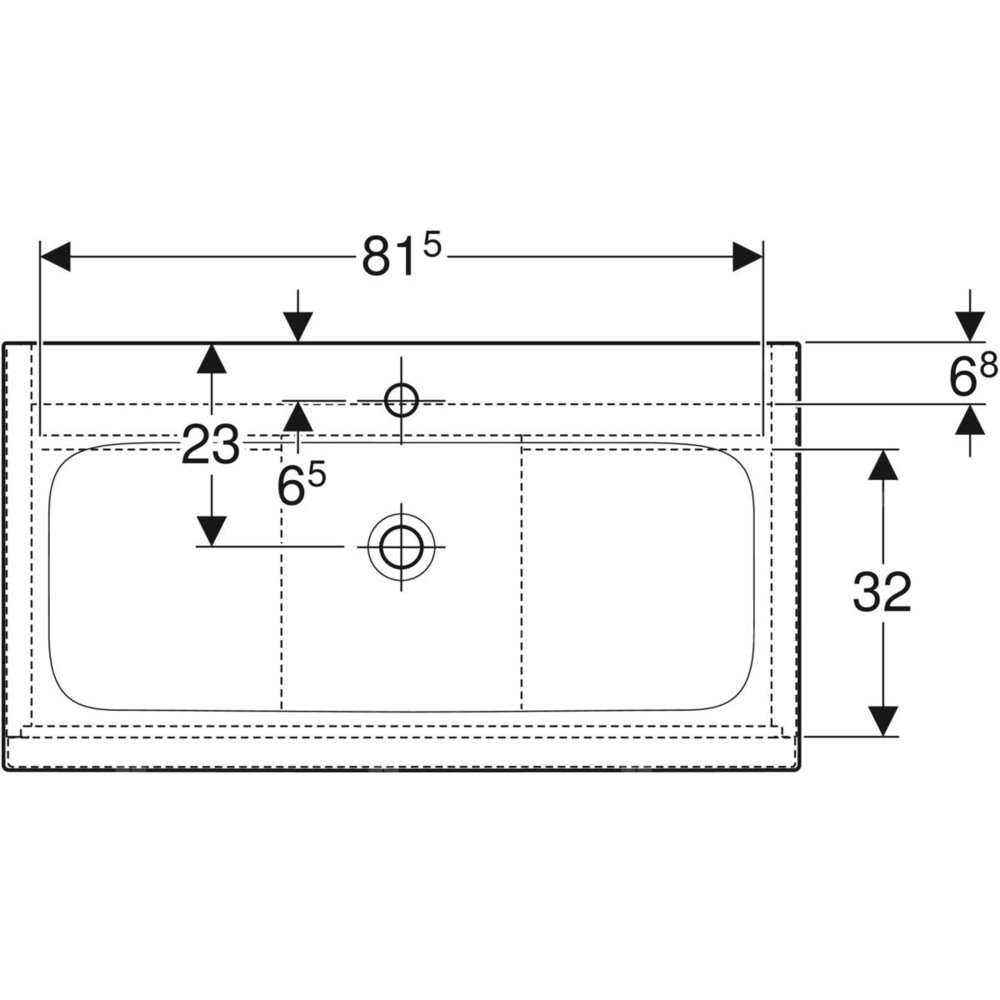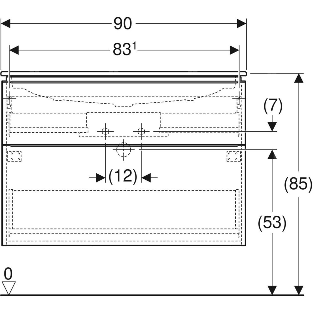 Zestaw umywalki meblowej Geberit iCon slim rim, z szafką pod umywalkę, z dwoma szufladami i zestawem odpływowo-przelewowym do umywalki: B=90cm, Umywalka: biały, Korpus i front: dąb / melaminowa struktura drewna, Uchwyt: lava / malowany proszkowo, matowy