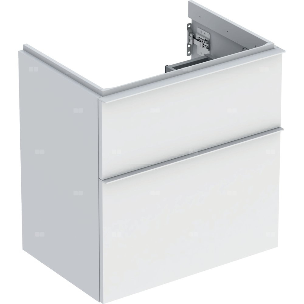 Szafka pod umywalkę Geberit iCon, z dwoma szufladami, krótka: Szerokość umywalki=60cm, Korpus i front: biały / lakierowany matowy, Uchwyt: biały / powlekany proszkowo, matowy