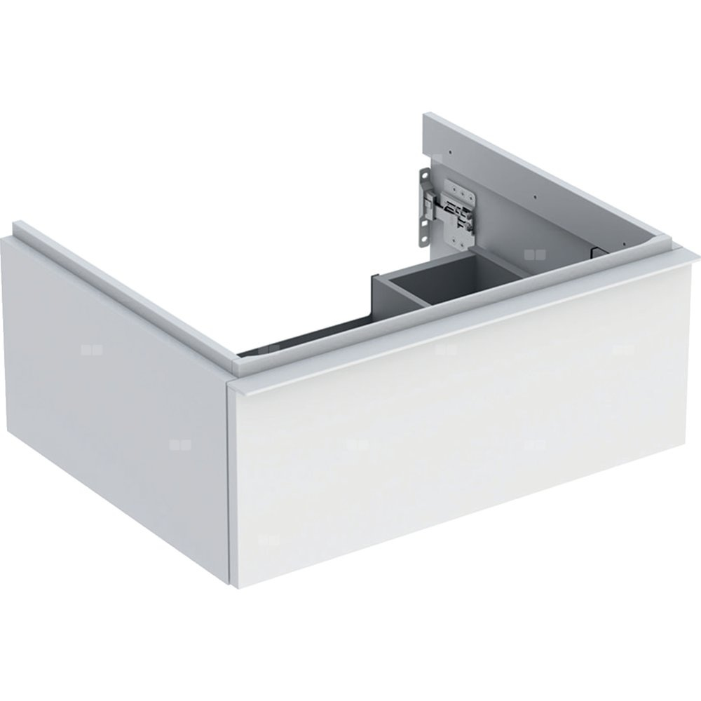 Szafka pod umywalkę Geberit iCon, z jedną szufladą: Szerokość umywalki=60cm, Korpus i front: biały / lakierowany matowy, Uchwyt: biały / powlekany proszkowo, matowy