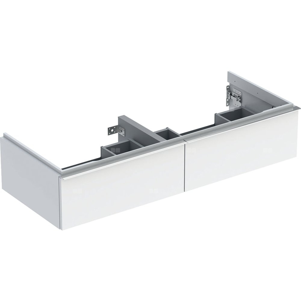 Szafka pod umywalkę podwójną Geberit iCon, z dwoma szufladami: Szerokość umywalki=120cm, H=24.7cm, Korpus i front: biały / lakierowany na wysoki połysk, Uchwyt: chromowany z połyskiem