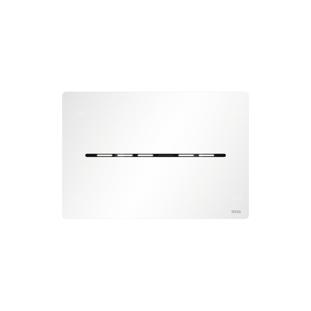 Mechanizm spłukujący elektroniczny do bezdotykowego uruchamiania standardowych spłuczek TECE (głębokość montażowa 13 cm), uruchamianych z przodu, z mechanizmem na wysokości ok. 1 M (środek płytki spłukującej). Bardzo płaski przycisk spłukujący ze stali nierdzewnej z materiałami montażowymi, wodoszczelną obudową baterii do instalacji w spłuczce (z czterema bateriami typu mono/D/LR 20) i silniczkiem uruchamiającym do spłukiwania jedną lub dwoma ilościami wody. Kompatybilny z płytką maskującą z koszem na kostki czyszczące.