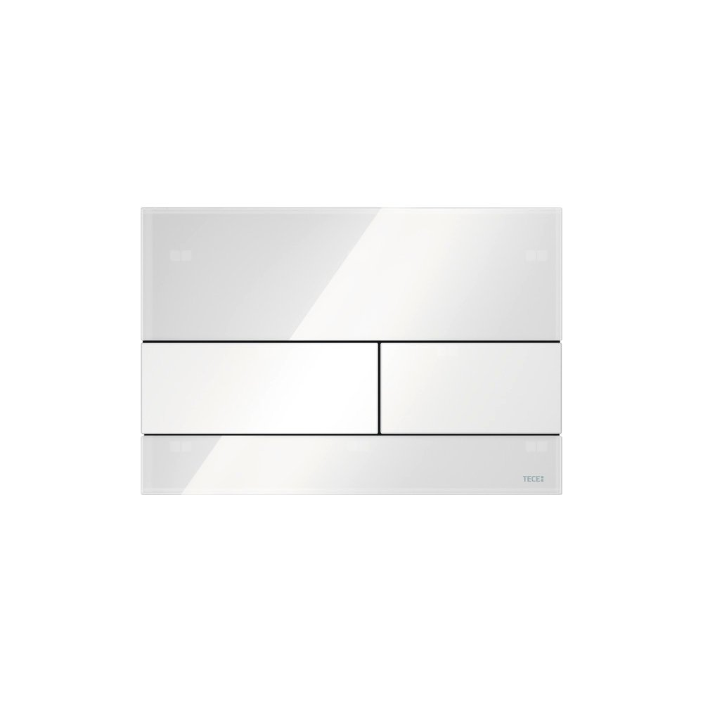 Przycisk spłukujący do spłuczek TECE uruchamiany z przodu lub od góry. Płaski przycisk szklany. Odpowiedni do montażu zlicowanego w połączeniu z ramką montażową do WC (np. Nr kat. 9240649). Kompatybilny z płytką maskującą z koszem na kostki czyszczące.