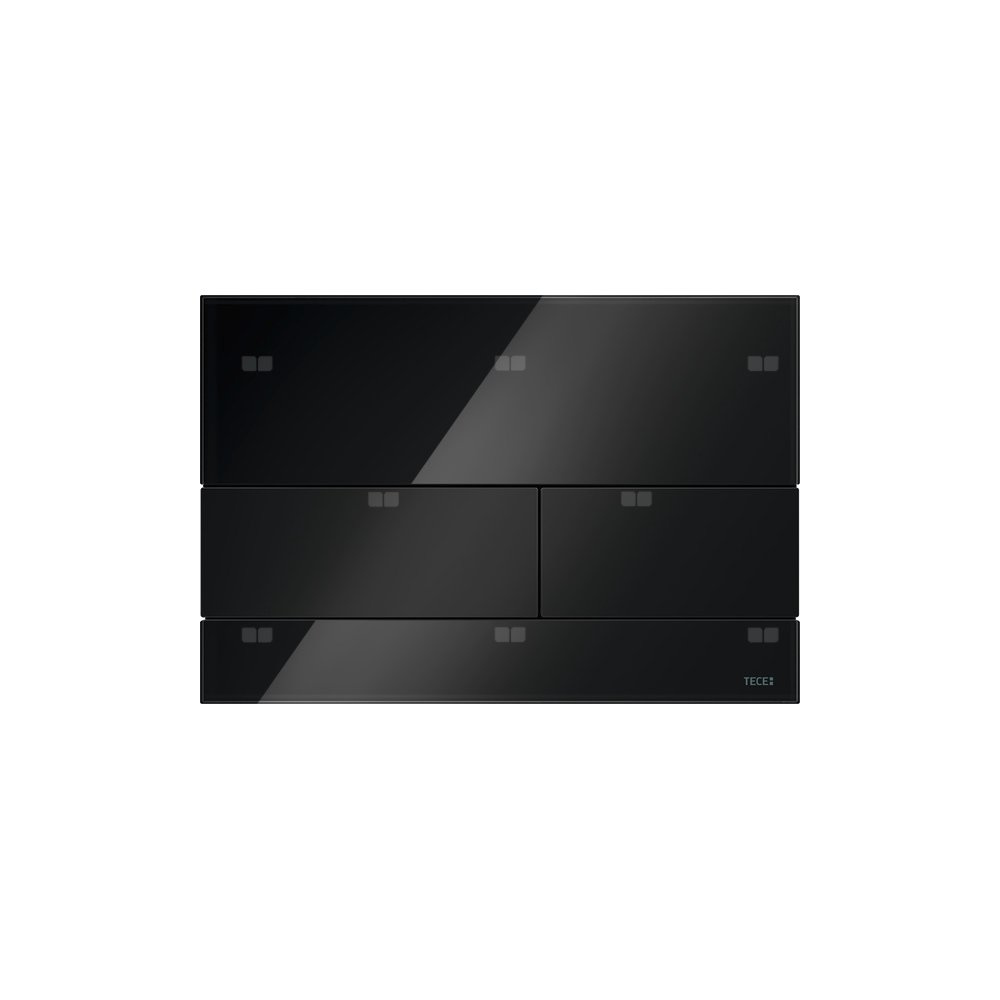 Przycisk spłukujący do spłuczek TECE uruchamiany z przodu lub od góry. Płaski przycisk szklany. Odpowiedni do montażu zlicowanego w połączeniu z ramką montażową do WC (np. Nr kat. 9240649). Kompatybilny z płytką maskującą z koszem na kostki czyszczące.