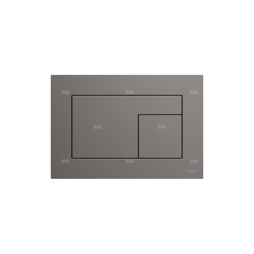 Przycisk spłukujący do spłuczek TECE uruchamiany z przodu lub od góry. Bardzo płaski przycisk spłukujący z powierzchnią FENIX NTM (FENIX® firmy Arpa Industriale). Powierzchnia dotykowa Matte Soft zapobiegająca zostawaniu odcisków palców. Przyciski spłukujące z gumowymi podkładkami, z drążkami uruchamiającymi i materiałami montażowymi. Odpowiedni do montażu w zabudowie mokrej w połączeniu z ramką montażową do WC i ramką dystansową. Kompatybilny z płytką maskującą z koszem na kostki czyszczące