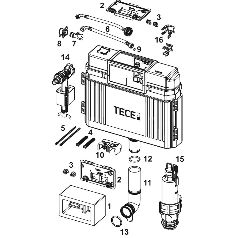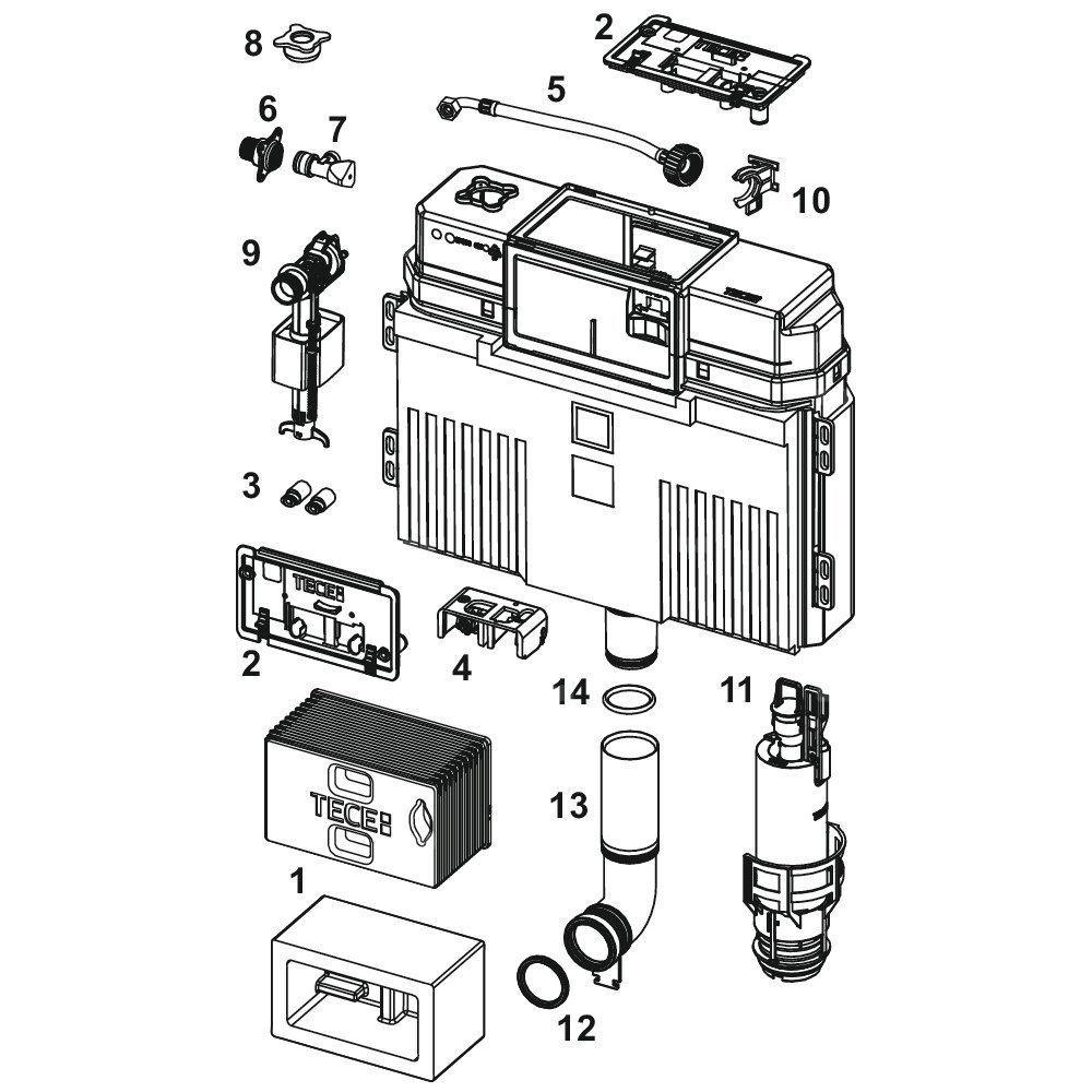 Spłuczka podtynkowaTECETECE, 513 x 499 x 141 mm, uruchamiana od góry, uruchamiana od przodu, z kolanem odpływowym 185mm