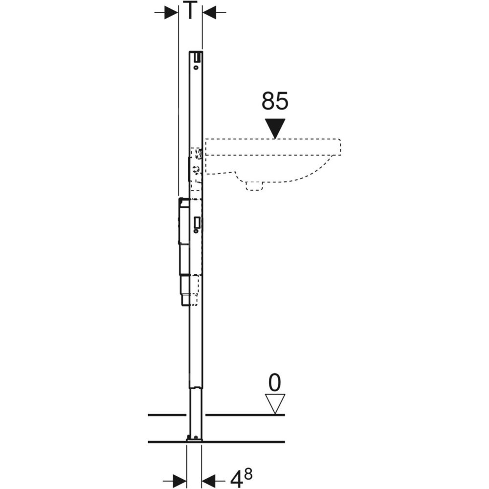 Stelaż podtynkowy do umywalki GEBERIT Duofix, 1120 x 500 x 75 mm, bateria: stojąca z podtynkową skrzynką funkcyjną, regulacja wysokośći, wbudowany syfon