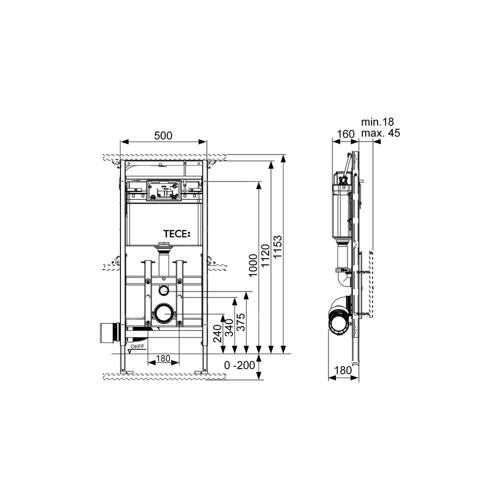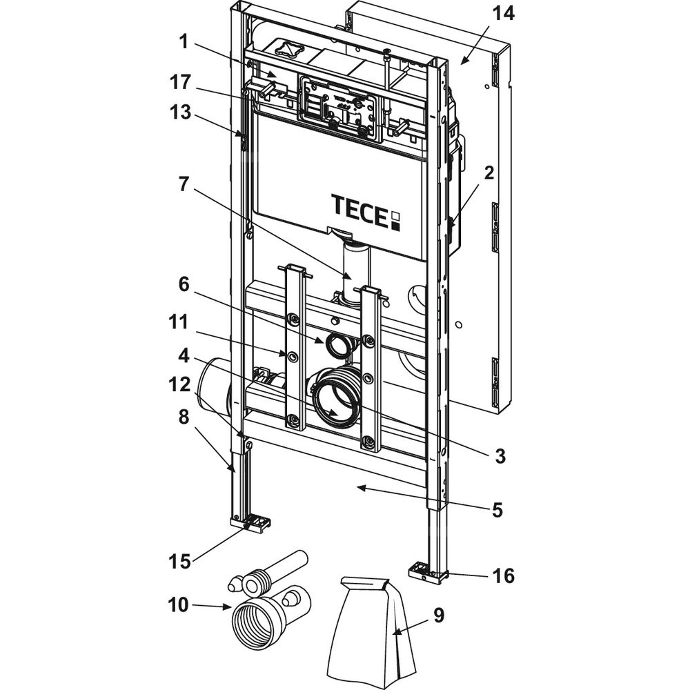 Podtynkowy moduł WC przeznaczony do montażu na kształtownikach stalowych TECEprofil lub do instalacji w ścianach z profili metalowych lub drewnianych oraz jako ścianka przednia lub stelaż narożnikowy.
