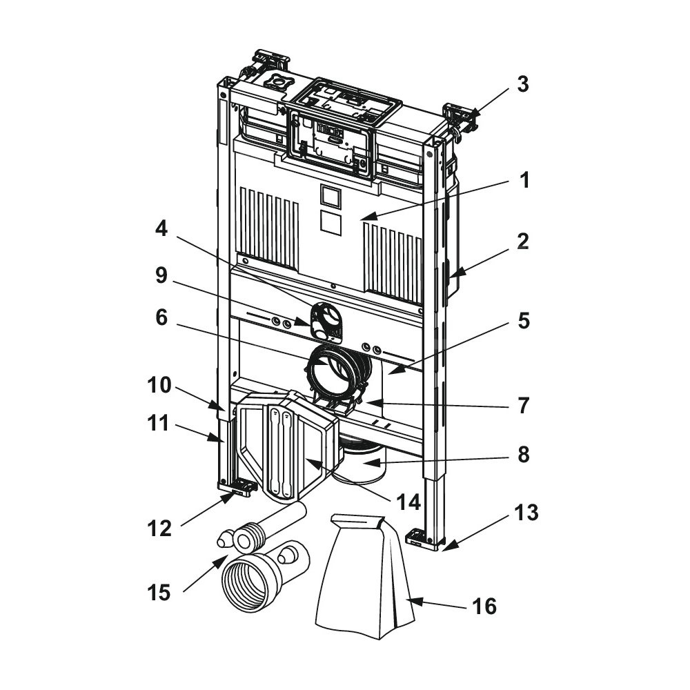 - zestaw przyłączeniowy do instalacji do uniwersalnych stelaży do toalet myjących 820 mm