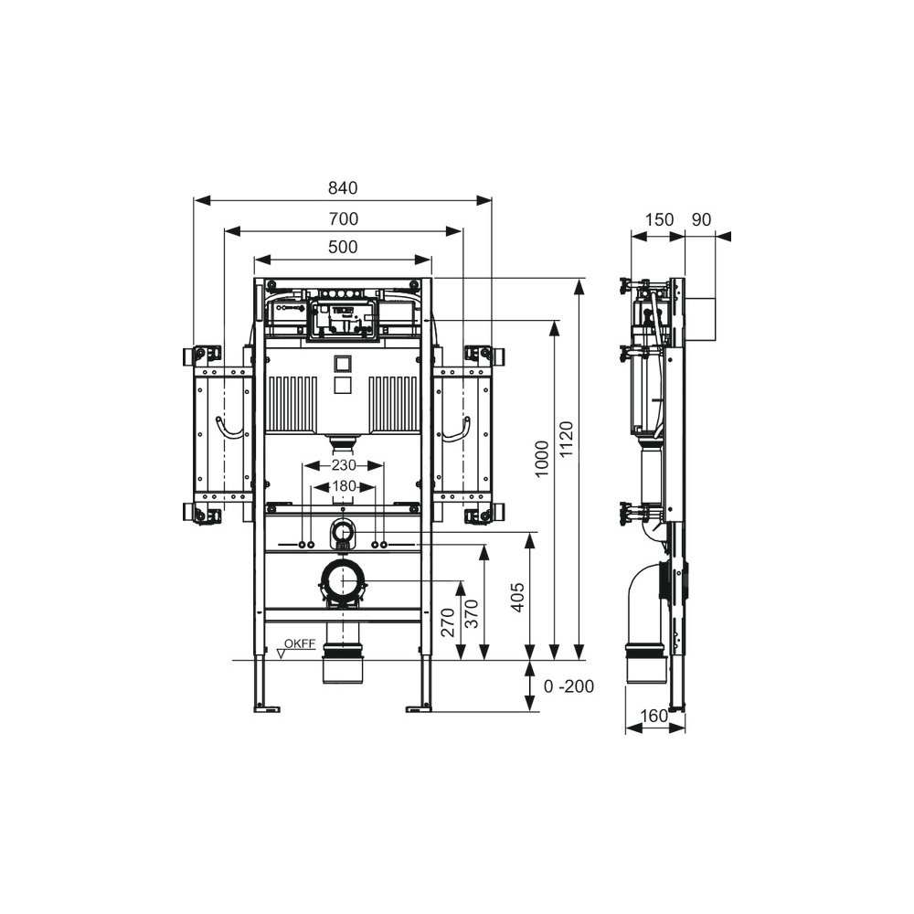 Stelaż podtynkowy do WC TECE profil dla niepełnosprawnych, 1120 x 840 x 160 mm, regulowana wysokość, ze spłuczką