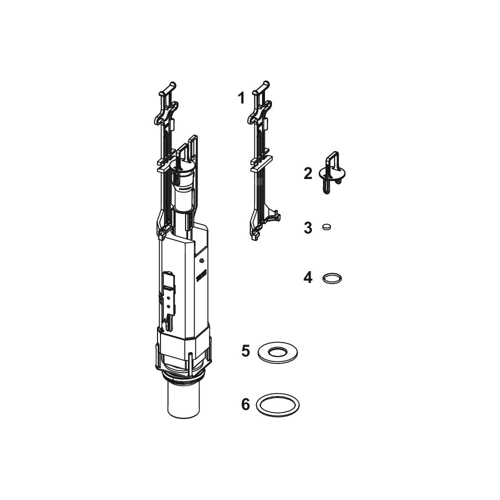 Zawór spustowy do spłuczek TECE Octa II (głębokość montażowa 8 cm), z dociskiem i gniazdem zaworu.