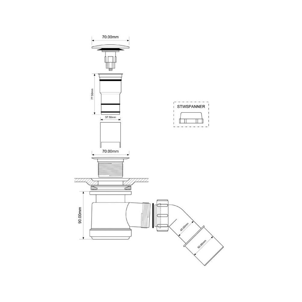 Syfon brodzikowy "klik-klak" z odejściem 40/50mm czyszczony od góry ,pokrywa mosiądz STAL SZCZOTKOWANA 70mm