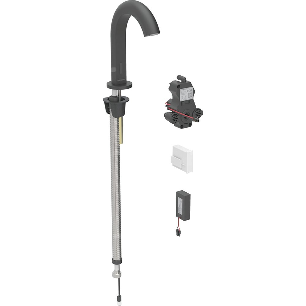 Bateria umywalkowa Geberit Piave, stojąca, zasilanie bateryjne, do podtynkowej skrzynki funkcyjnej, bez mieszacza, czarny mat