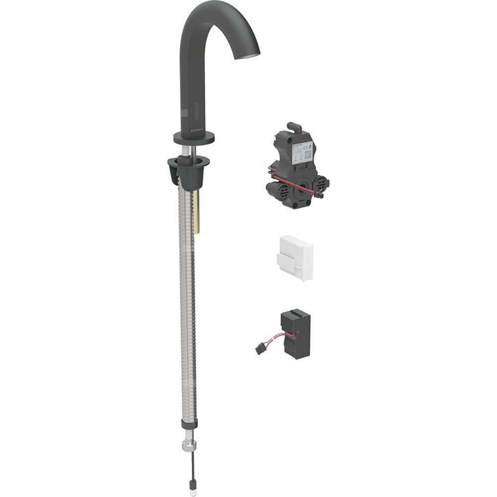 Bateria umywalkowa Geberit Piave, stojąca, zasilanie sieciowe, do podtynkowej skrzynki funkcyjnej, z mieszaczem, czarny mat