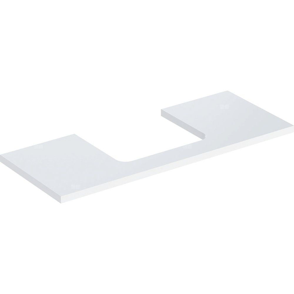 Blat pod umywalkę Geberit ONE z wycięciem, do prostokątnej umywalki nablatowej: B=119cm, Biały, Przekrój=Na środku, Lakierowany na wysoki połysk