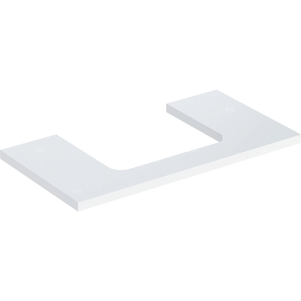 Blat pod umywalkę Geberit ONE z wycięciem, do prostokątnej umywalki nablatowej: B=89.4cm, Biały, Przekrój=Na środku, Lakierowany na wysoki połysk