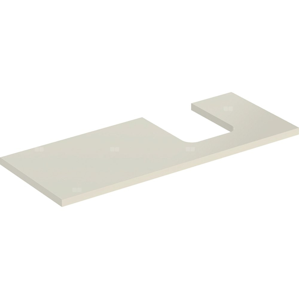 Blat pod umywalkę Geberit ONE z wycięciem, do umywalki nablatowej w kształcie misy: B=119cm, Piaskowy szary, Lakierowany na wysoki połysk, Przekrój=Prawa strona