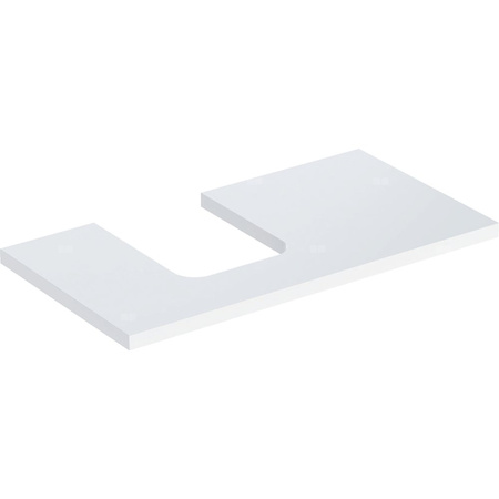Blat pod umywalkę Geberit ONE z wycięciem, do umywalki nablatowej w kształcie misy: B=89.4cm, Biały, Lakierowany na wysoki połysk, Przekrój=Lewa strona