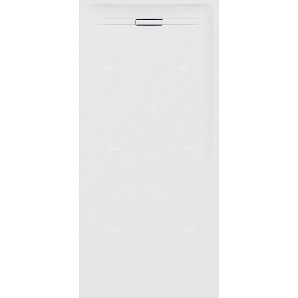 Prostokątny Powierzchnia strukturalna Odpływ z tyłu na środku Klasa antypoślizgowa C wg EN 16165 (dla ruchu pieszego na boso) Klasa antypoślizgowa zgodnie z normą NF: PN 24 Spełnia wymogi normy EN 14527, klasa 1 Do montażu wewnątrz budynków Do zlicowania z powierzchnią podłogi Do odprowadzania wody z jednej głowicy prysznicowej Do wysokości warstw podłogi z nogami montażowymi brodzika do poziomu gotowej podłogi 11–26 cm Do podwyższonego montażu do 4 cm nad gotową podłogą Materiał: Żywica kamienna Kolor główny: Biały Powierzchnia: Struktura łupka Zawartość: Pokrywa odpływu