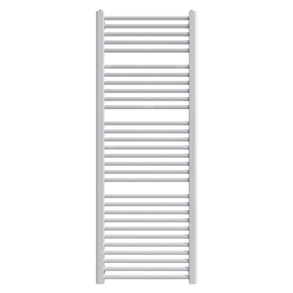 Grzejnik łazienkowy w kolorze białym. Typ: GRN - grzejnik pionowy łazienkowy. Materiał: stal niskowęglowa niestopowa. Konstrukcja: kolektor profil "D" 40 x 30, rury DN 20. Wysokość: 620, 740, 940, 1180, 1340, 1500, 1700, 1820 mm, szerokość: 400, 500, 600 mm. Ciśnienie robocze do 1,0 MPa. Temp. pracy do 95°C. Wyposażenie standardowe: korek 1/2", odpowietrznik 1/2", zawieszenie grzejnikowe typ Z 13. Wykończenie powierzchni: kolor biały. Przyłącza 1/2" GW.
