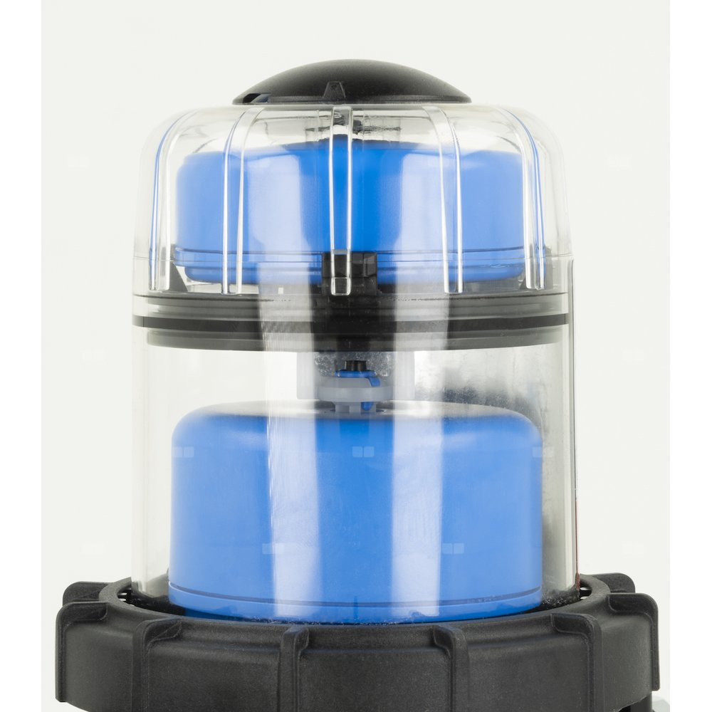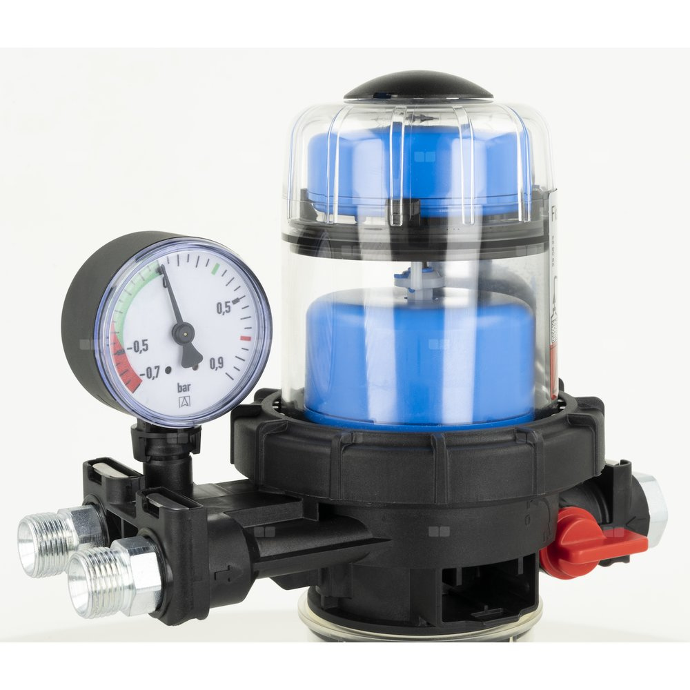 Zintegorwane w zaworze zwrotnym zabezpieczenie przeciwko nadmiernemu wzrostowi ciśnienia otwiera przepływ do zbiornika po przekroczeniu 1,5 bara, chroniąc instalację przed uszkodzeniem.