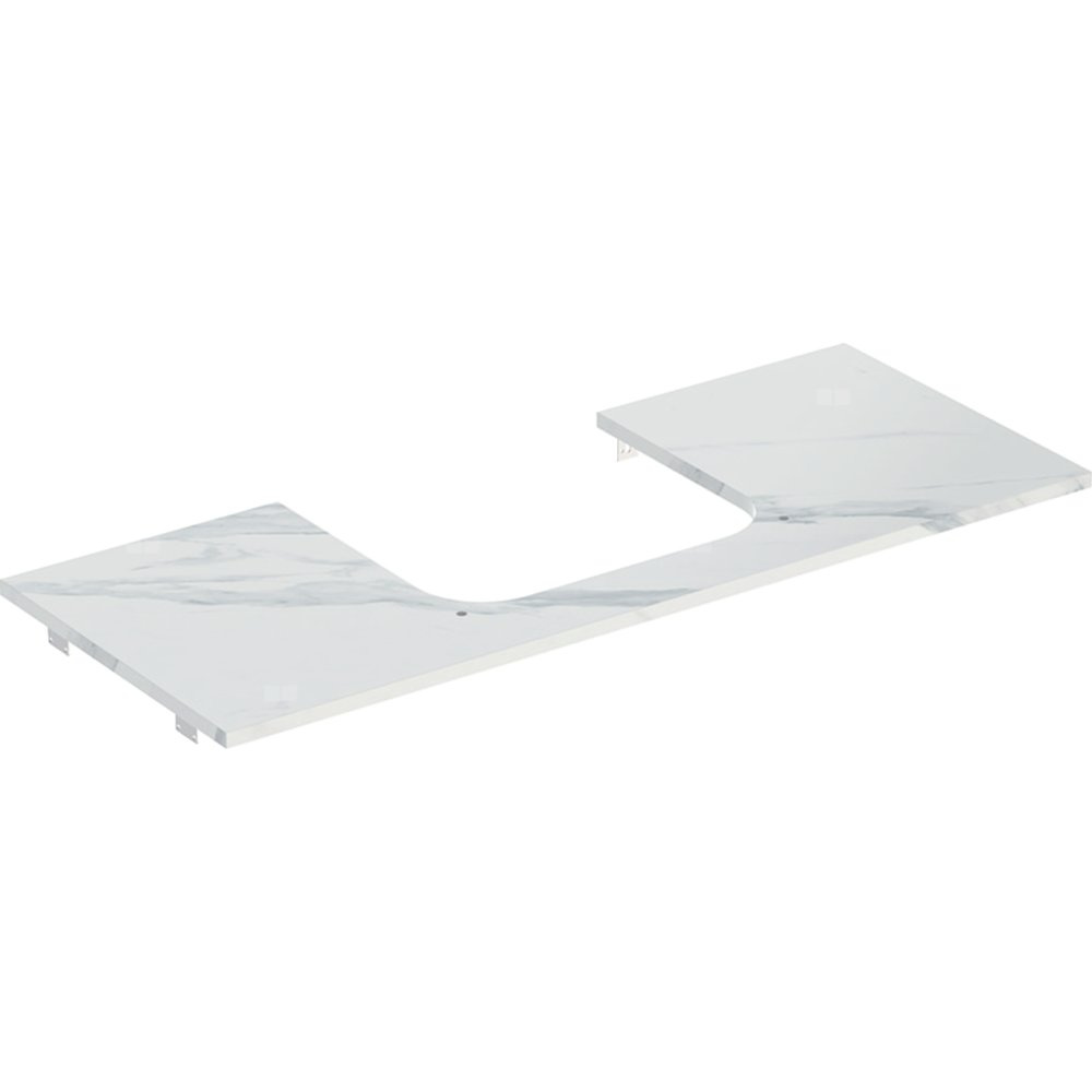 Geberit ONE Blat pod umywalkę, wycięcie na środku, do prostokątnej umywalki stawianej na blat, B120cm, H2cm, T47cm, gres szkliwiony, biały, imitacja marmuru