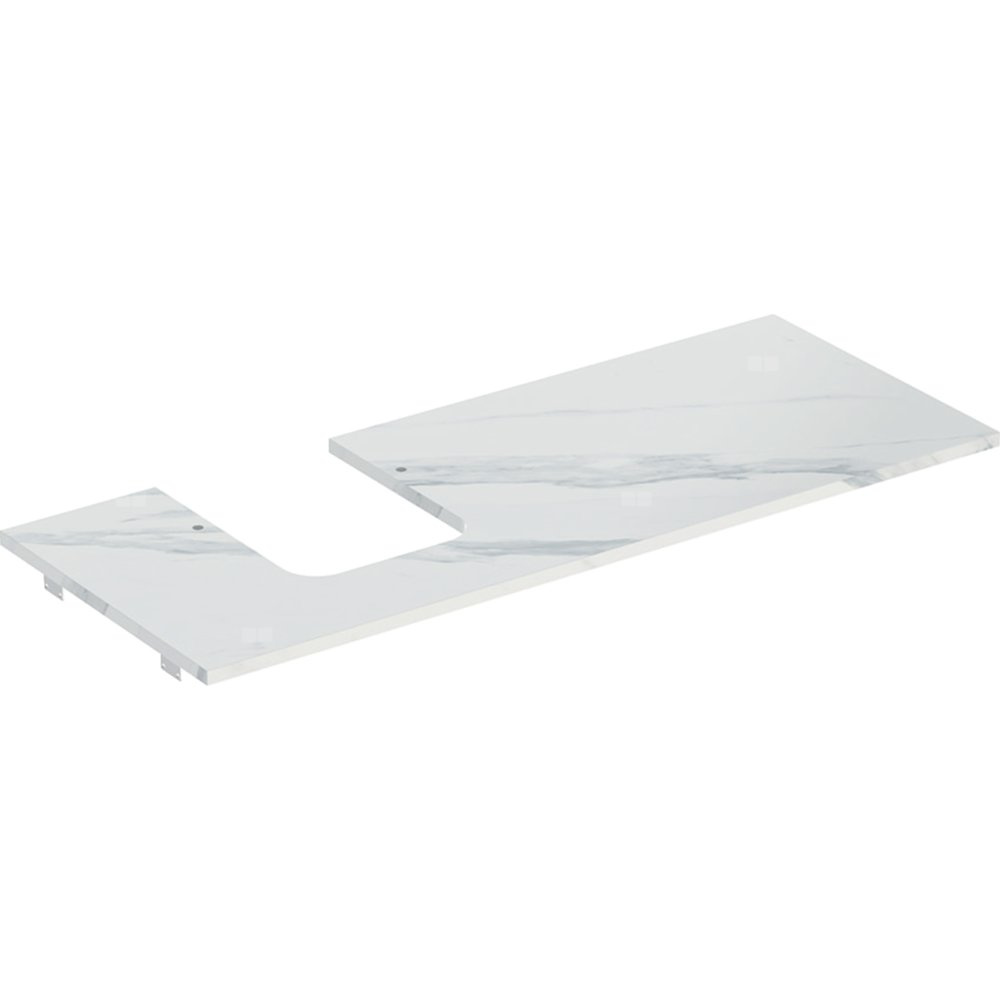 Geberit ONE Blat pod umywalkę, wycięcie z lewej strony, do umywalki stawianej na blat w kształcie misy, B120cm, H2cm, T47cm, gres szkliwiony, biały, imitacja marmuru