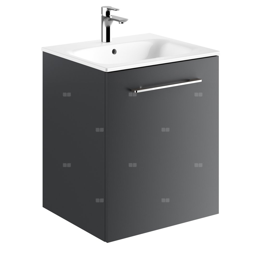 Geberit Selnova Square Zestaw szafki pod umywalkę, z jednymi drzwiami, B55cm, H65.2cm, T50.2cm, lava, z umywalką meblową, cienki rant, z przelewem, z otworem na baterię