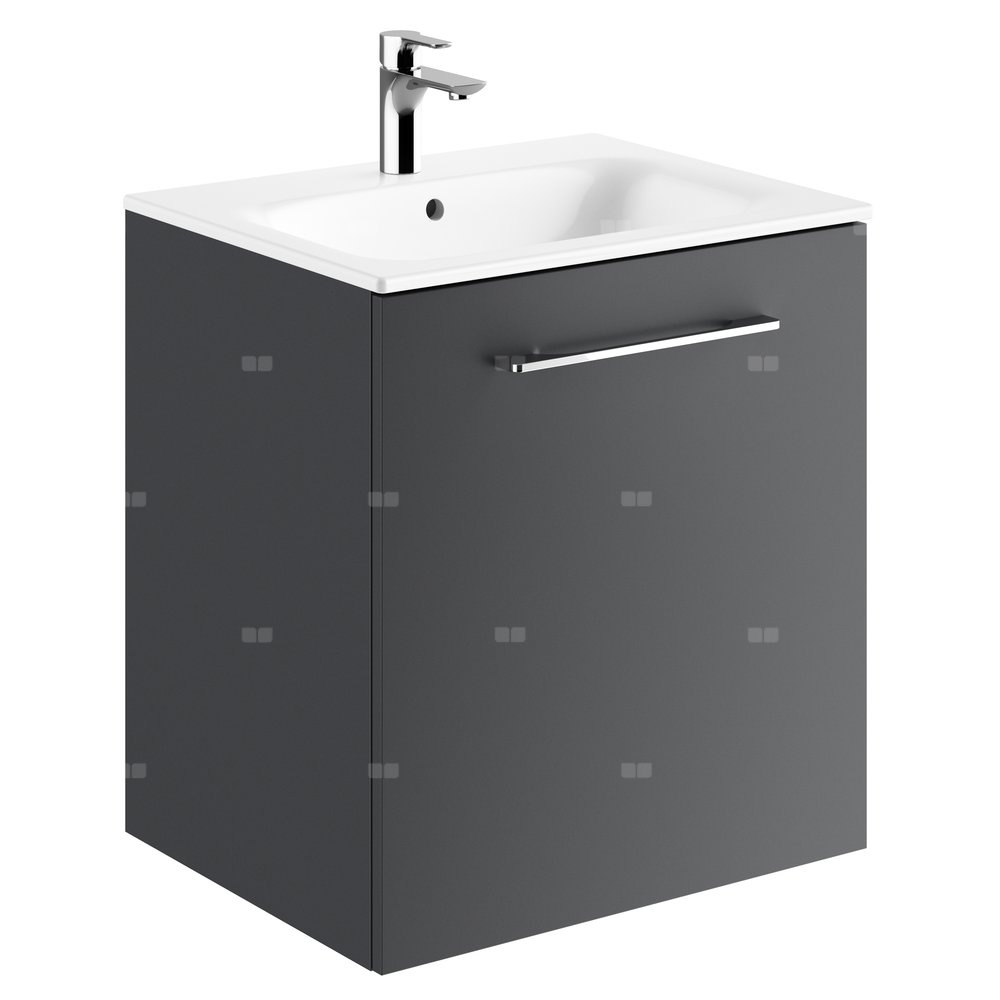 Geberit Selnova Square Zestaw szafki pod umywalkę, z jednymi drzwiami, B60cm, H65.2cm, T50.2cm, lava, z umywalką meblową, cienki rant, z przelewem, z otworem na baterię
