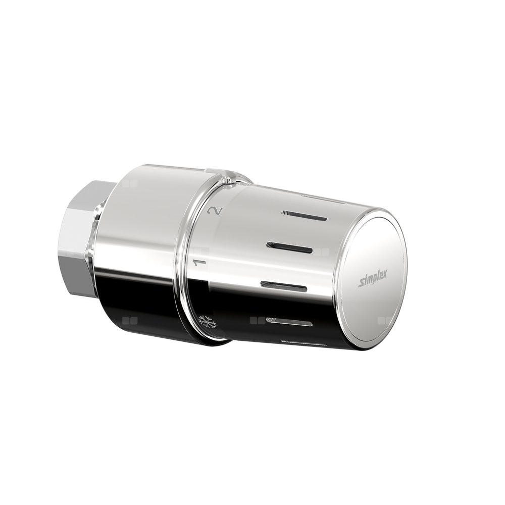 Głowica termostatyczna z przyłączem gwintowanym M30x1,5 lub przyłączem zaciskowym, wyposażona w wbudowany czujnik cieczowy. Głowica posiada możliwość blokowania i/lub ograniczenia zakresu regulacji. Ruchome wrzeciono pozwala na zmianę długości głowicy w zależności od dokonanych ustawień.