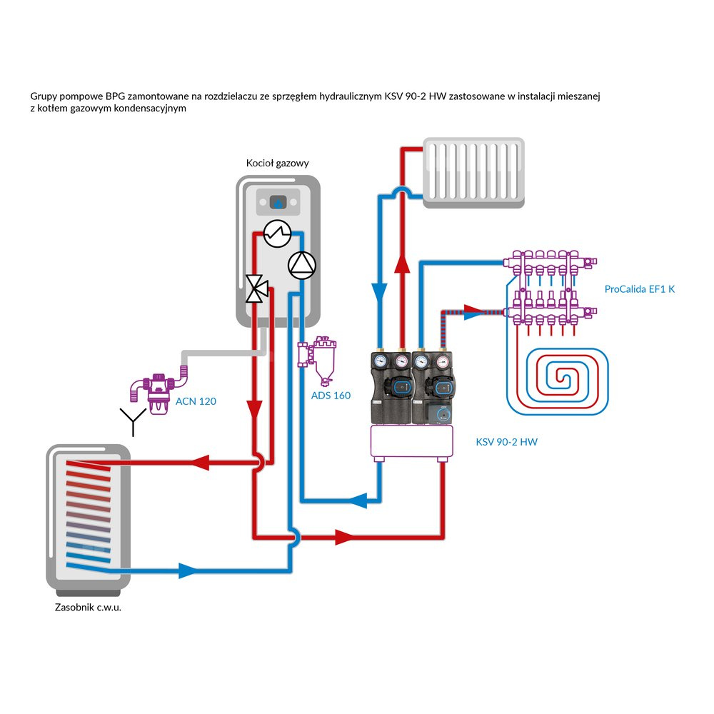 Stosowana w instalacjach grzewczych i chłodzących.Montowana na rozdzielaczu KSV 90 / rozdzielaczu ze sprzęgłem KSV 90 HW lub jako niezależny element instalacji.
