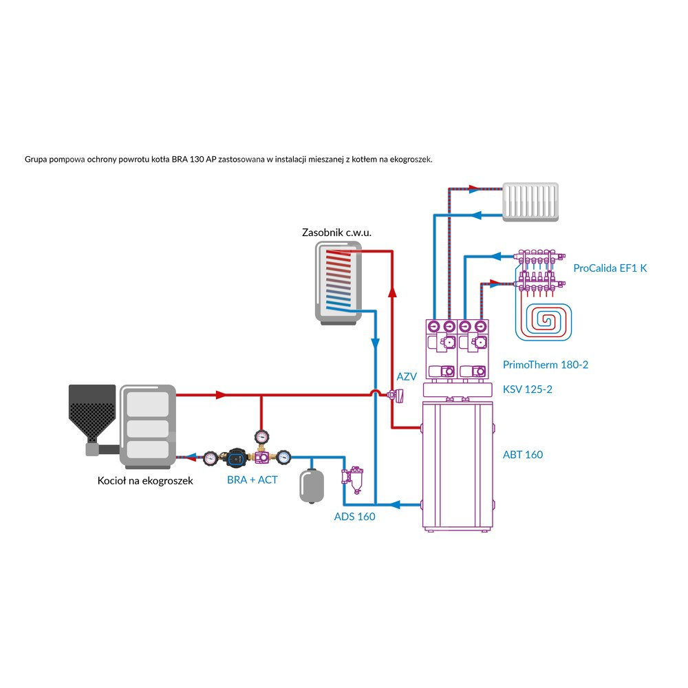 Stosowana w instalacjach grzewczych z kotłami stałopalnymi.Montowana na powrocie z instalacji.