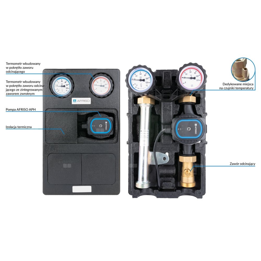 Grupa pompowa AFRISO PrimoTherm K 180-1 DN 25 AP GZ x GW 1 1/2'' x 1'', z izolacją, z pompą obiegową AFRISO APH 361 25-7/180 mm
