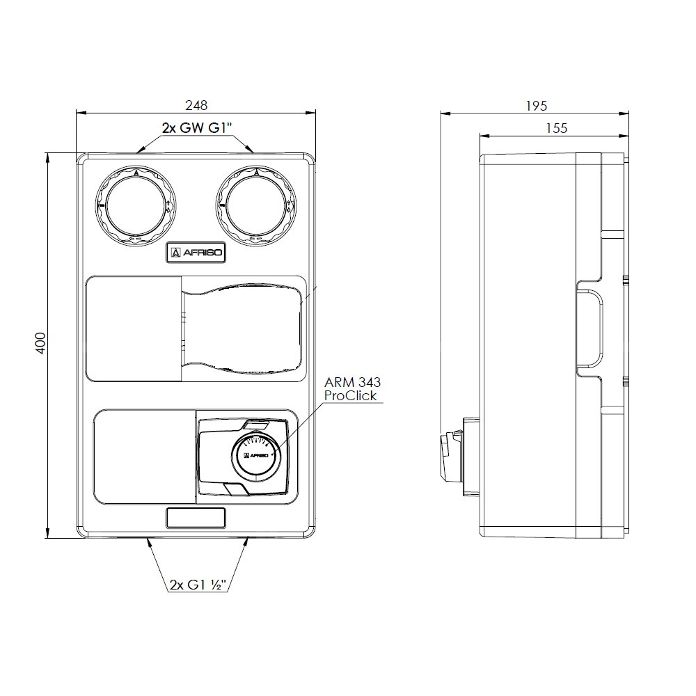 Grupa pompowa AFRISO PrimoTherm K 180-2 DN 25 3-WM-SM GZ x GW 1 1/2'' x 1'', z zaworem mieszającym, z siłownikiem arm 343 proclick