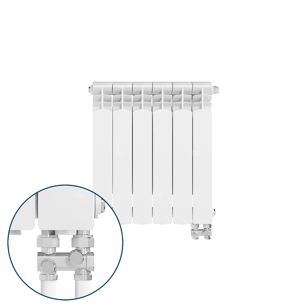 Grzejnik żeberkowy KFA Armatura G500F/D/6 aluminium, podłączenie dolne, prawe, proste 572 x 483 mm, kolor biały