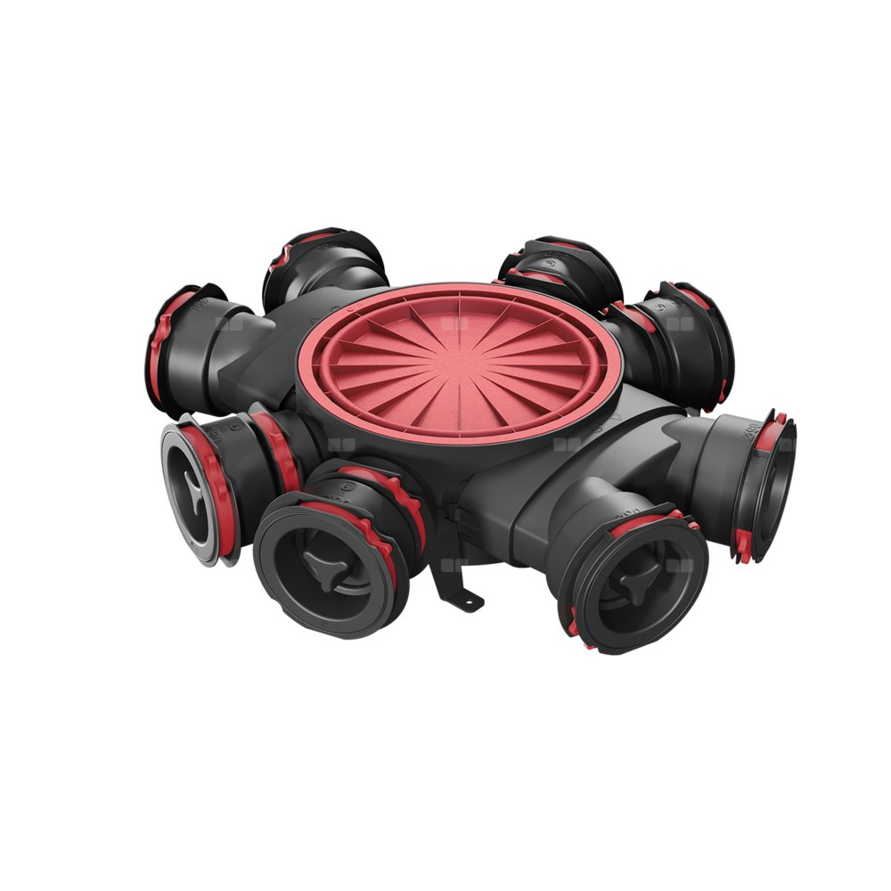 8 przyłączy w podstawowej konfiguracji z uszczelkami i pierścieniami w technologii OneClick® pozwalającymi na szybki i wygodny montaż rur wentylacyjnych.
