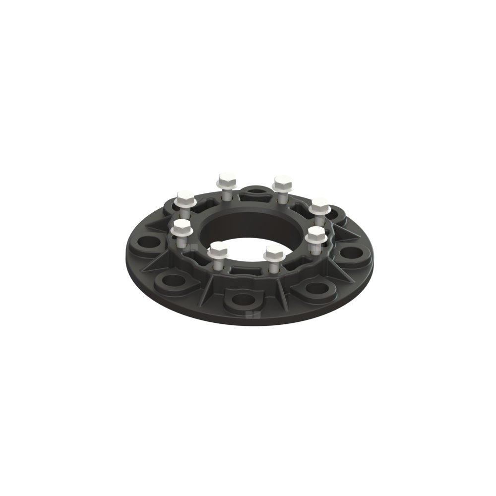 Adapter kołnierzowy do przystosowania armatur z tworzywa sztucznego z kołem otworów wewnątrz 115 mm (zewnątrz 160 mm) do kołnierza DN 80 wg DIN 2501. Zakres dostawy nie obejmuje uszczelki i śrub