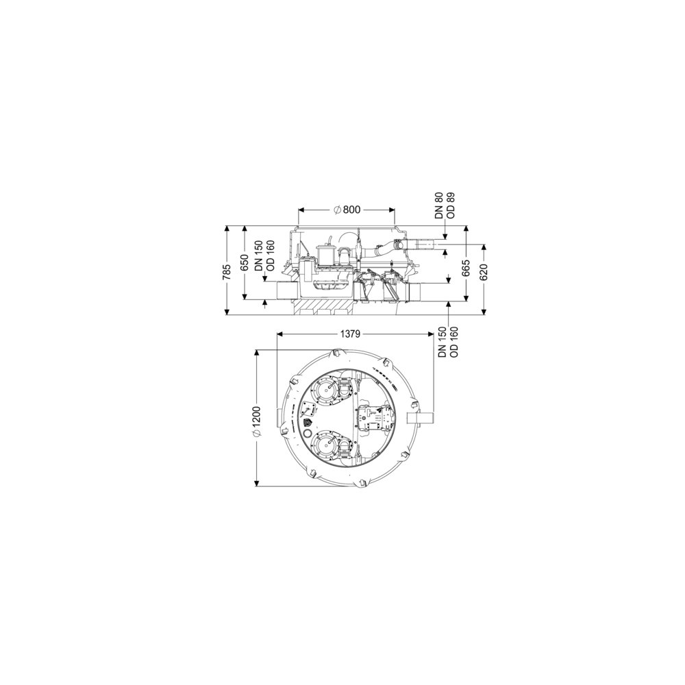KESSEL Przepompownia przeciw. Ecolift XL, ścieków Ścieki bez fekaliów, zabudowa w ziemi, urządzenie dwupompowe, z 2 SPF 3000 pomp zatapialnych, typ pracy S1, czujnik alarmu z Sonda optyczna, sterownik Comfort Plus, Wariant z najniższą zabudową