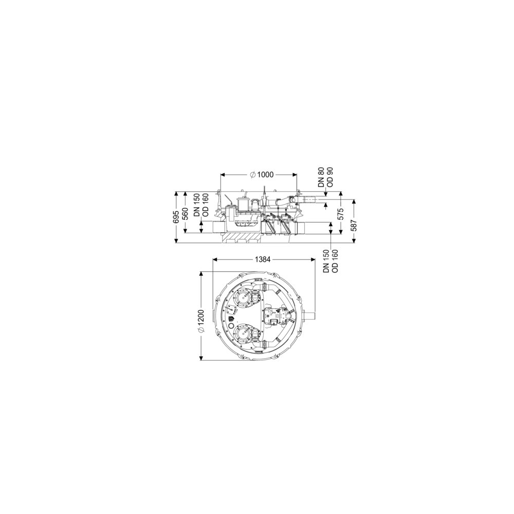 KESSEL Przepompownia przeciw. Ecolift XL, ścieków Ścieki zawierające fekalia i bez fekaliów, ustawienie swobodne, urządzenie dwupompowe, z 2 SPF 4500 pomp zatapialnych, typ pracy S1, czujnik alarmu z Sonda optyczna, sterownik Comfort Plus z redundancją