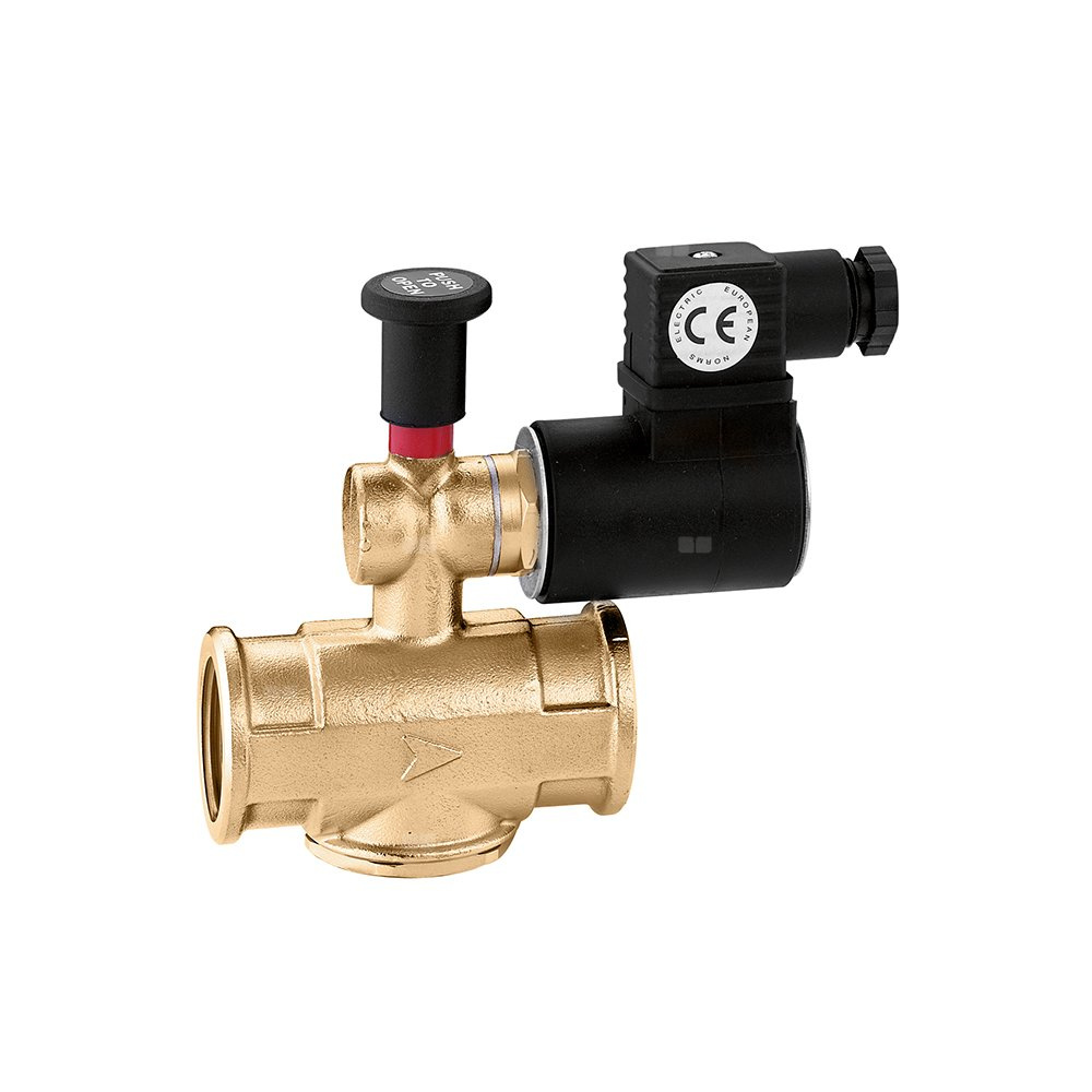 Zawór elektromagnetyczny do gazu, normalnie otwarty, z ręcznym odblokowaniem Przyłącze: Rp 1" (EN 10226-1) GW. Maksymalne ciśnienie pracy: 500 mbar. Zasilanie elektryczne: 230 V (AC). Stopień ochrony: IP 65.
