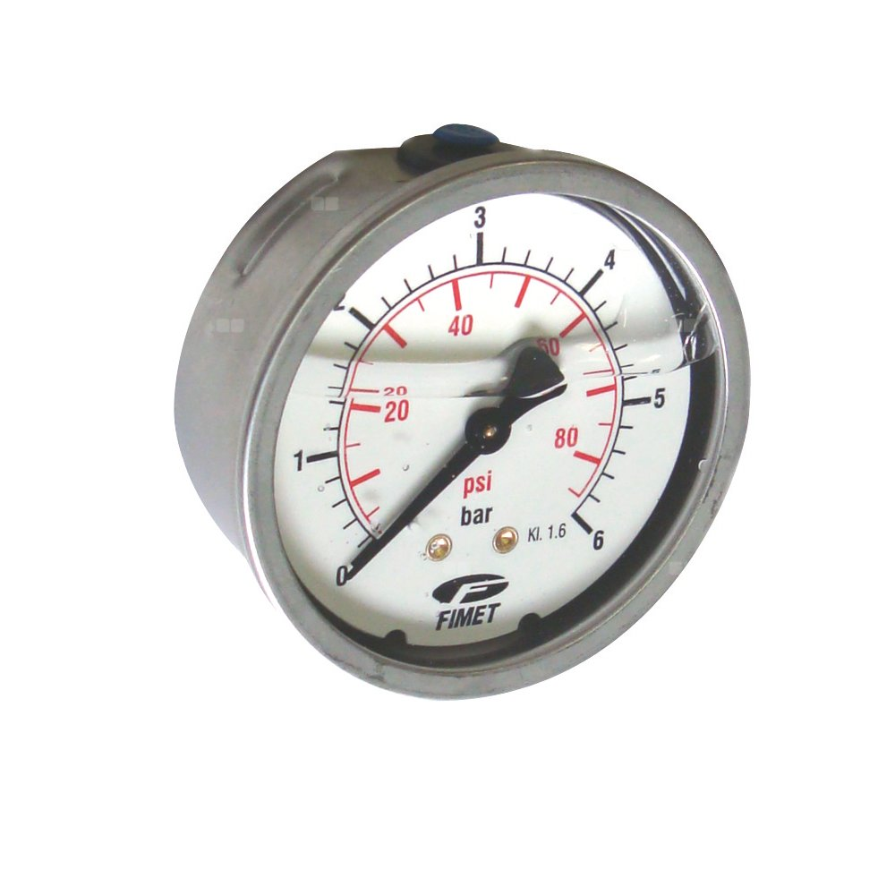 Manometr DN 63 z przyłączem tylnym, wypełniony gliceryną, z korpusem ze stali nierdzewnej, do zastosowań przemysłowych. Zakres pomiarowy 0÷1 do 0÷600 bar i podwójna skala bar/psi. Klasa dokładności 1.6. Inne skale i przyłącza dostępne na zamówienie.