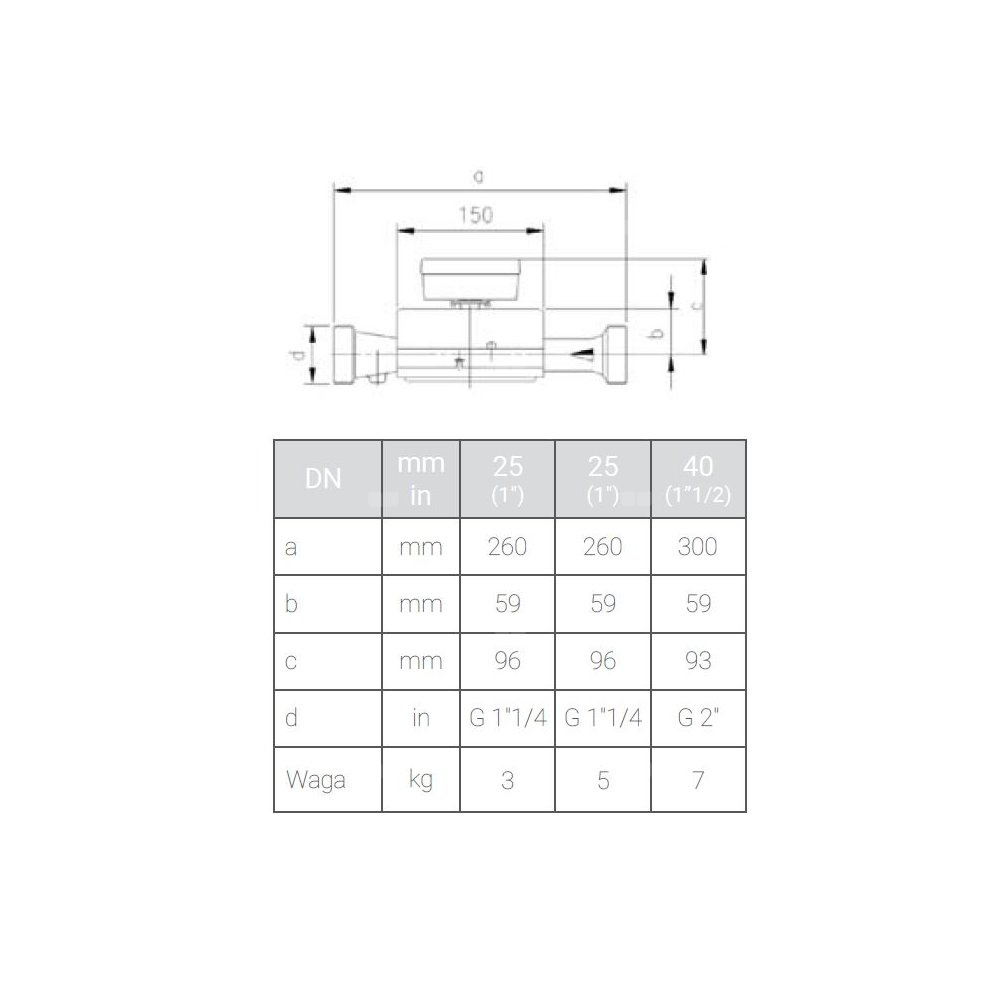 Model HYDROSONIS UP 1'' QN-6,0 m3/h DN 25 P lub Z