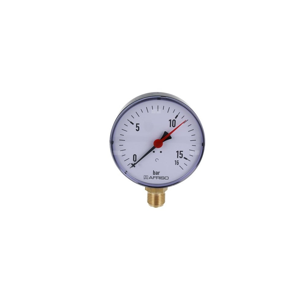 Manometr z rurką Bourdona AFRISO RF grzewczy 0/16 bar G1/2B radialne fi 100 mm, kl. 2.5%