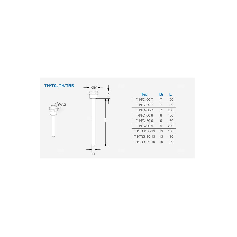 Niklowana tuleja zanurzeniowa do termostatów TC lub TRB, gwint zewnętrzny 1/2”, 0 - 120°C.