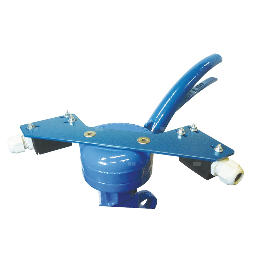 Dźwignia ręczna wykonana z żeliwa sferoidalnego epoksydowanego, 10-cio położeniowa z możliwością założenia blokady wyposażona w 2 wyłączniki krańcowe DN125-200