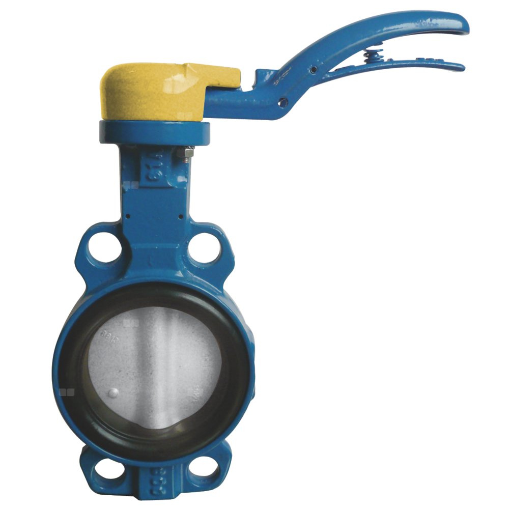 Przepustnica bezkołnierzowa SYLAX GAS z dźwignią ręczną, dysk: AISI316, wykładzina: NBR, korpus: GGG40 epoksyd., Pnom 0,6 MPa, tmax=60 st.C DN150