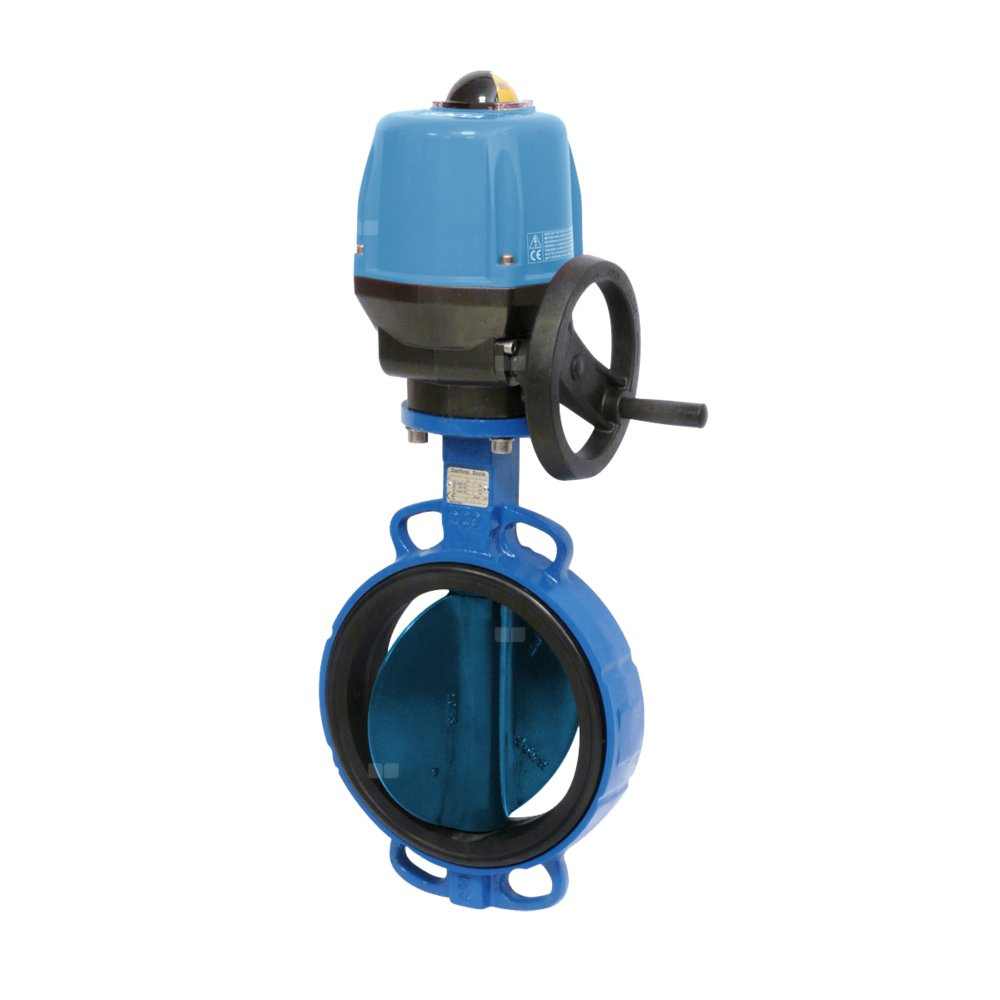 Przepustnica bezkołnierzowa SYLAX z napędem elektr. on/off SOCLA seria V 230V/50Hz, IP68, dysk: GGG40 epoksyd., wykładzina: EPDM, korpus: GG25 epoksyd., Pnom 1,6 MPa, tmax=120 st.C