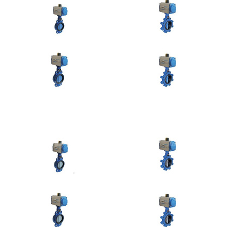 Przepustnica bezkołnierzowa SYLAX z napędem pneumatycznym SOCLA jednostronnego działania (ciśnienie powietrza zasilającego 6 bar), dysk: GGG40 epoksyd., wykładzina: EPDM, korpus: GG25 epoksyd., Pnom 0,6 MPa, tmax=120 st.C
