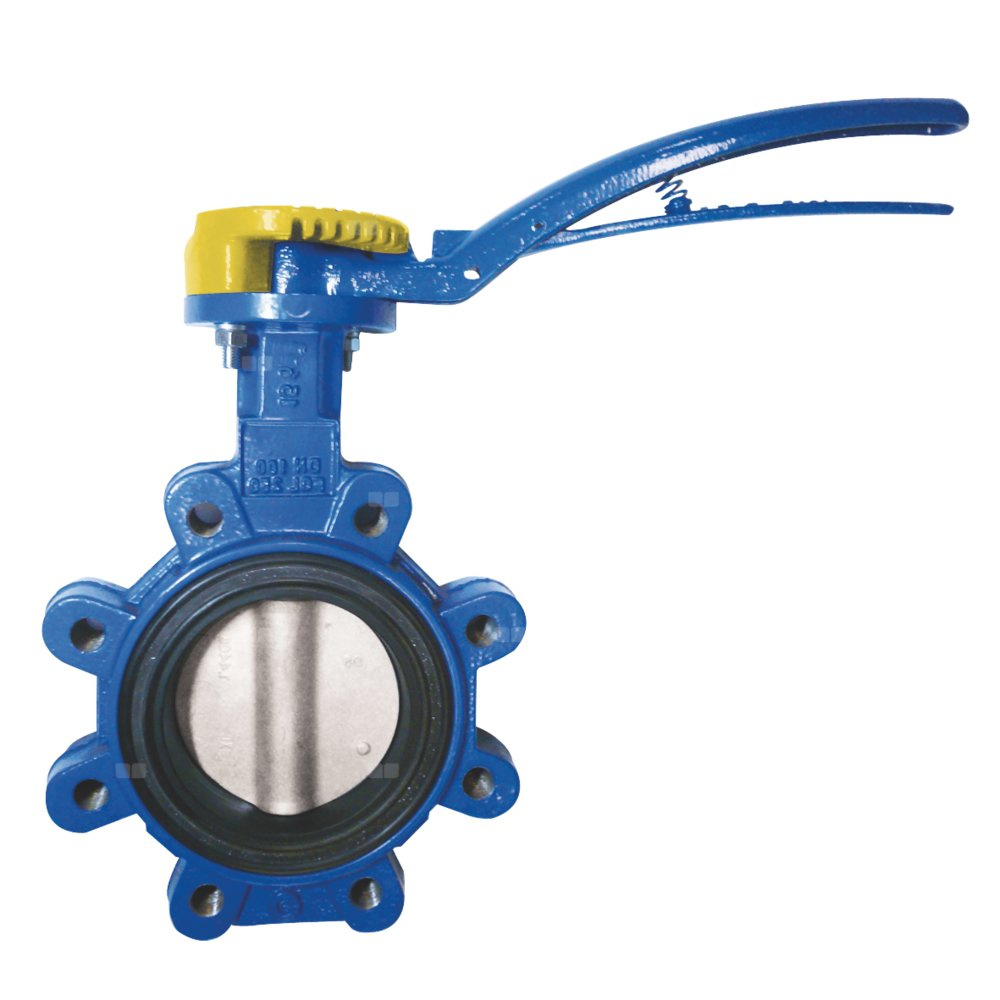 Przepustnica z otworami gwintowanymi SYLAX GAS z dźwignią ręczną, dysk: AISI316, wykładzina: NBR, korpus: GGG40 epoksyd., Pnom 0,6 MPa, tmax=60 st.C DN50